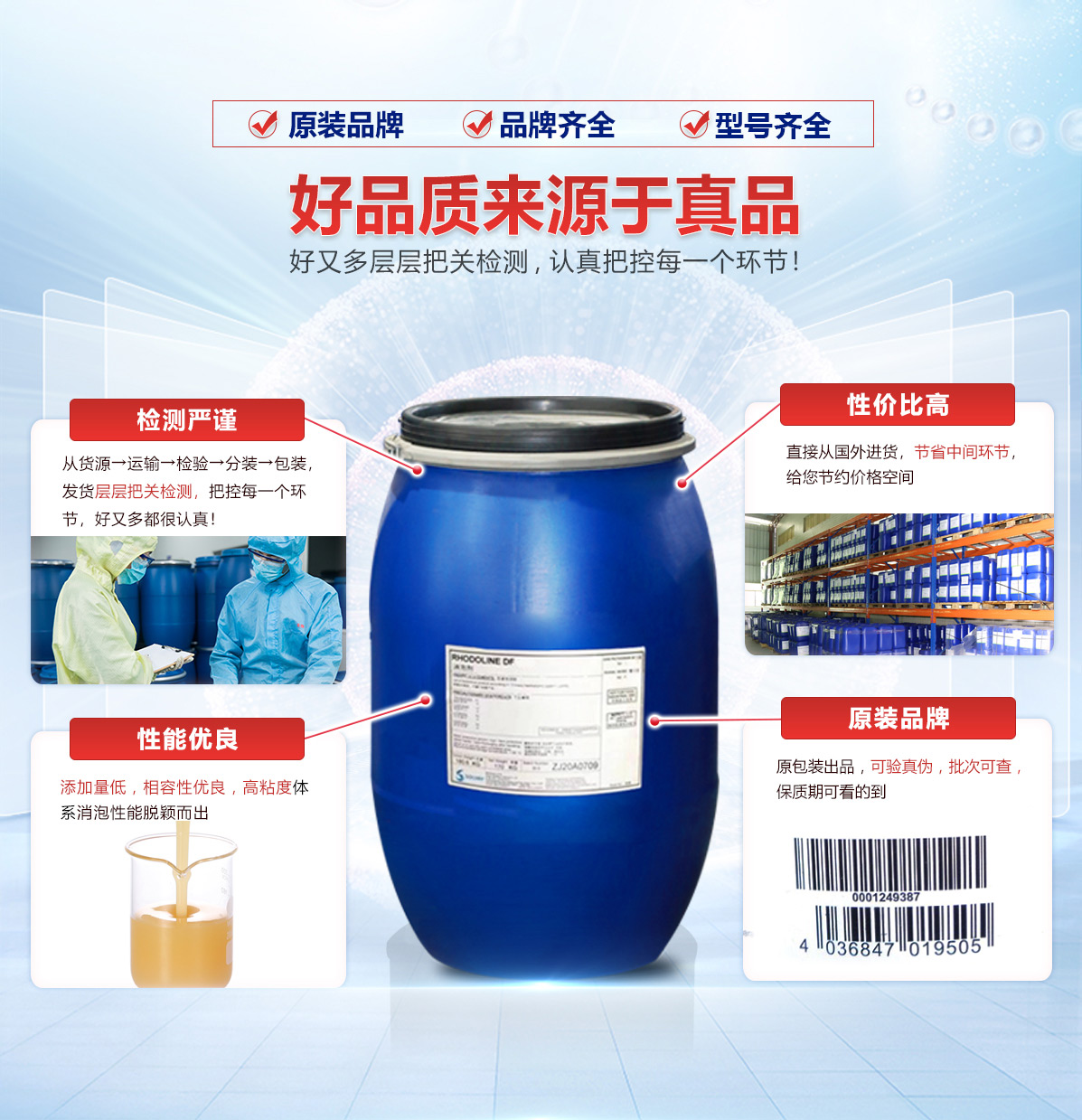 | 復膜膠消泡劑 | 具有優(yōu)良的抗泡性能,消除細小泡沫,不錯的消泡和抑泡劑 | 法國 | 20KG桶裝 | 24個月 |